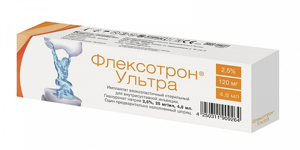 Флексотрон Ультра средство для внутрисуставного введения шприц 2,5%, 25мг/мл, 4,8мл шприц 1шт в наличии. Узнайте, как купить товар с бесплатной доставкой в Екатеринбург, Нижний Тагил, Первоуральск, Серов, Реж, Верхнюю Пышму, Богданович и другие города Свердловской области и России на странице «